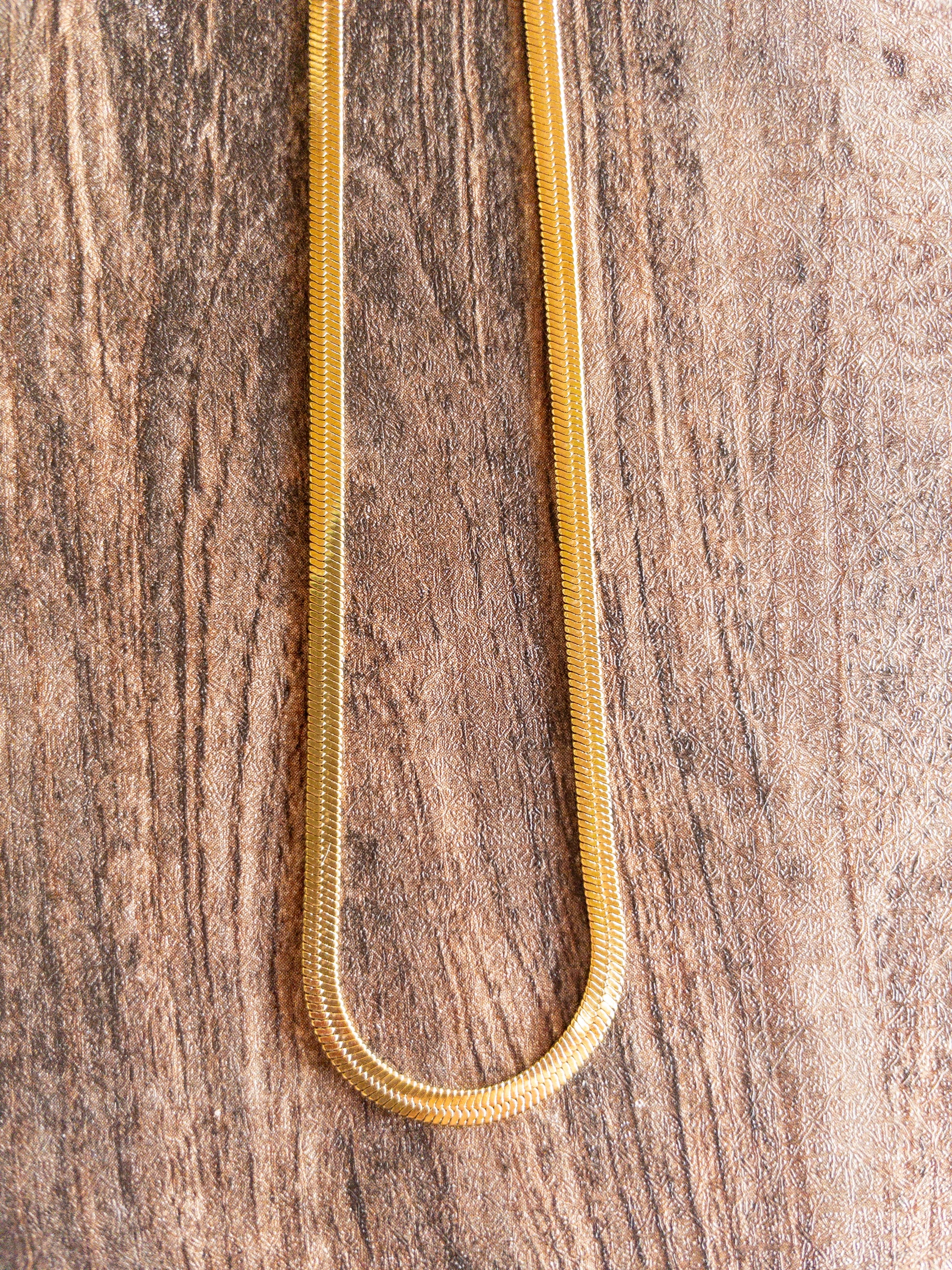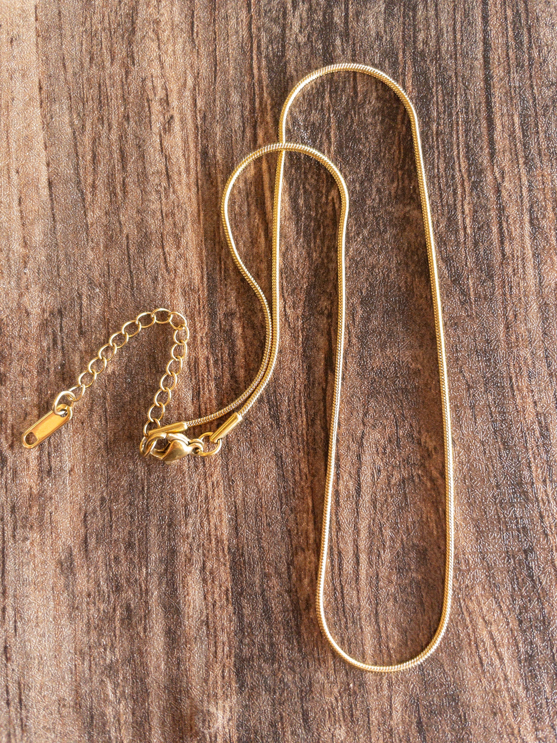 Available in both 18k gold-plated and stainless steel, this sleek snake chain offers effortless elegance. Its smooth, fluid design drapes beautifully along the neckline, making it a versatile staple for any jewellery collection.