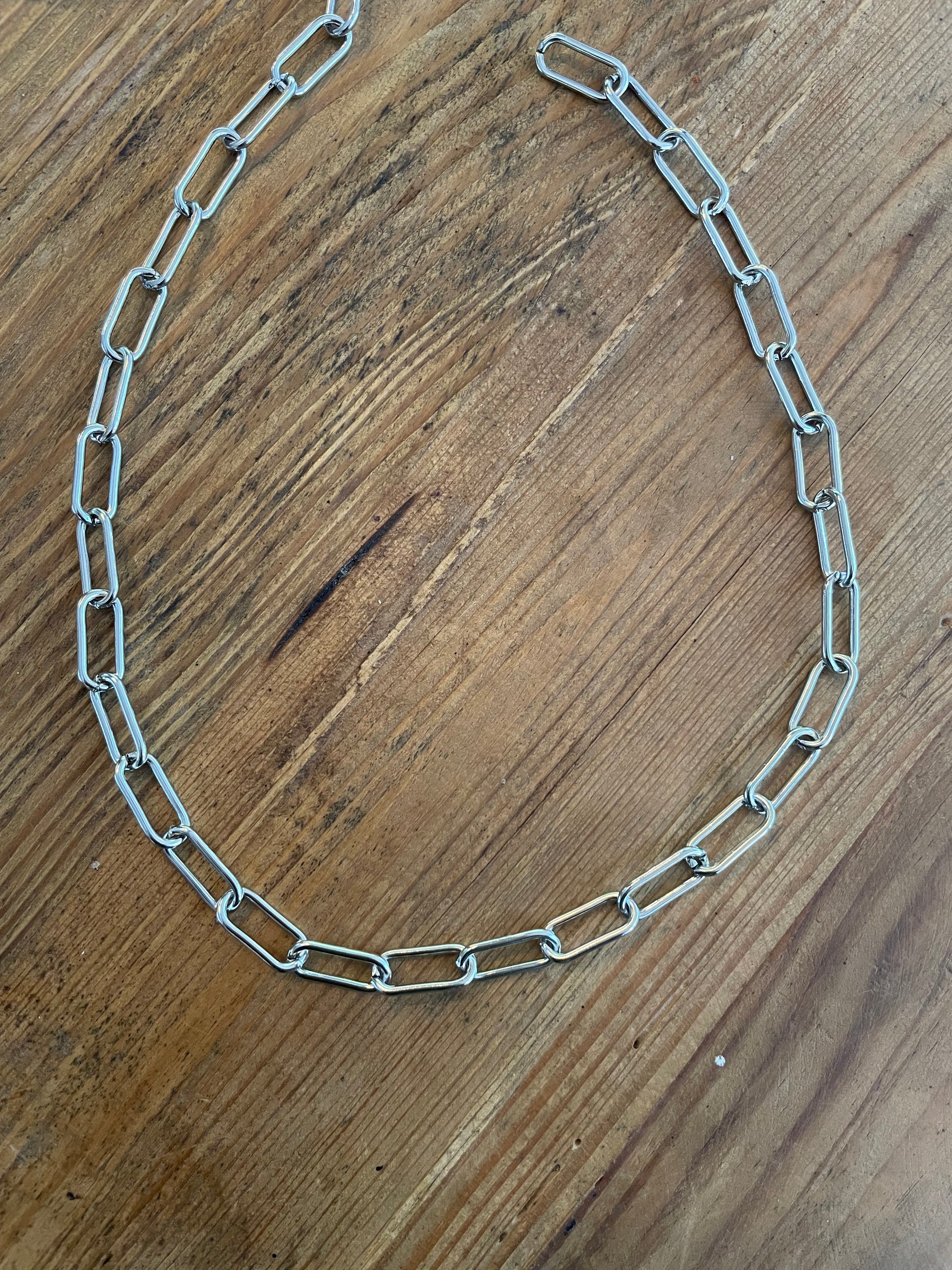 This stainless steel necklace features a thick paper link chain, offering a bold yet versatile design. Its structured links create a modern, polished look that effortlessly complements both casual and elevated styles.